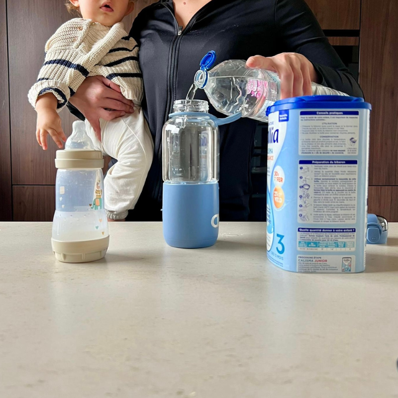 Il lui permet de maintenir le lait et l’eau à température constante pendant cette durée mais aussi de préparer l’équivalent de 9 biberons